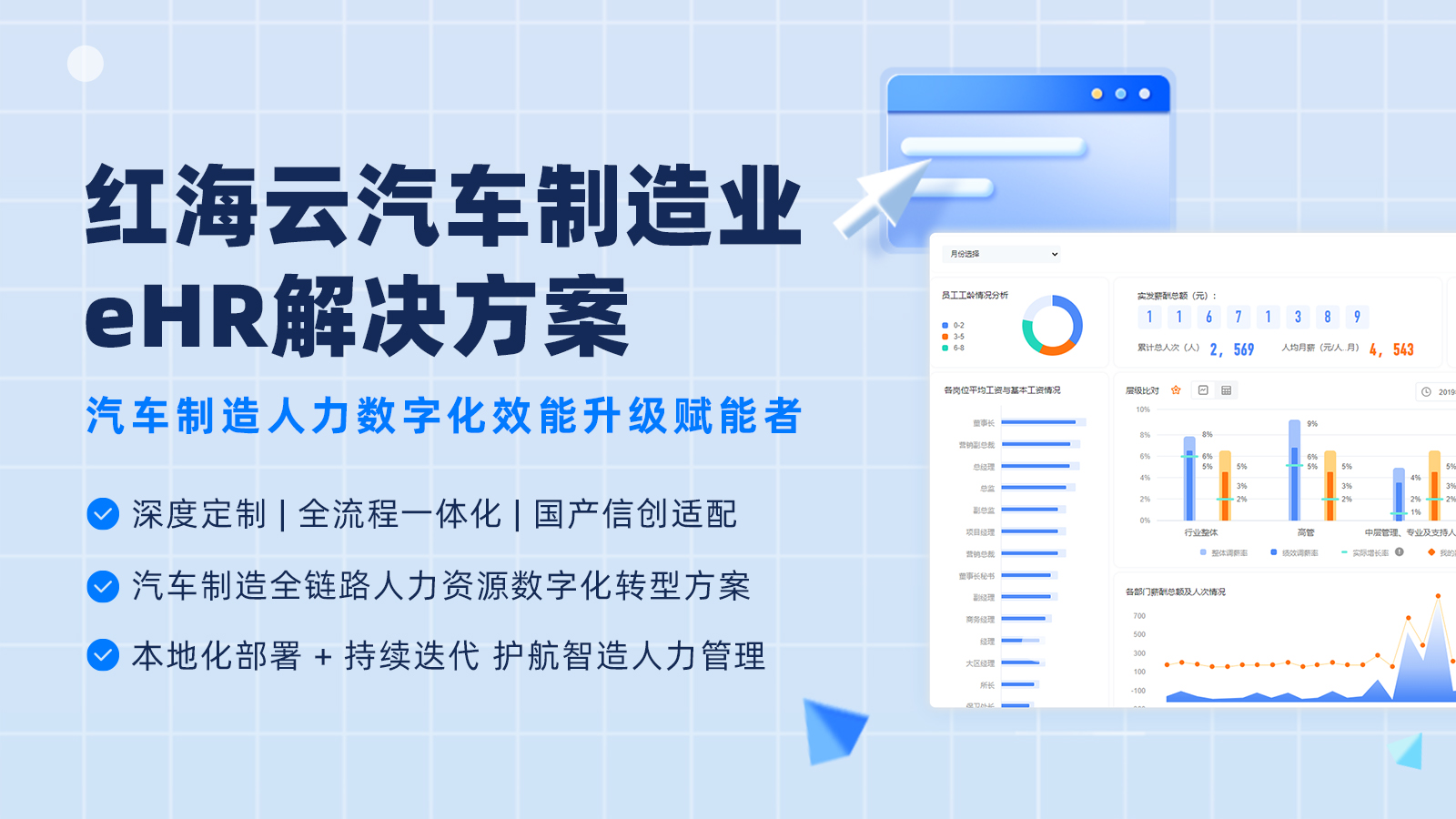 面对汽车制造业HR管理的四大断层,红海云以“行业场景驱动+技术平台赋能”为核心设计理念,打造了面向不同规模和细分业务的多层级解决方案。