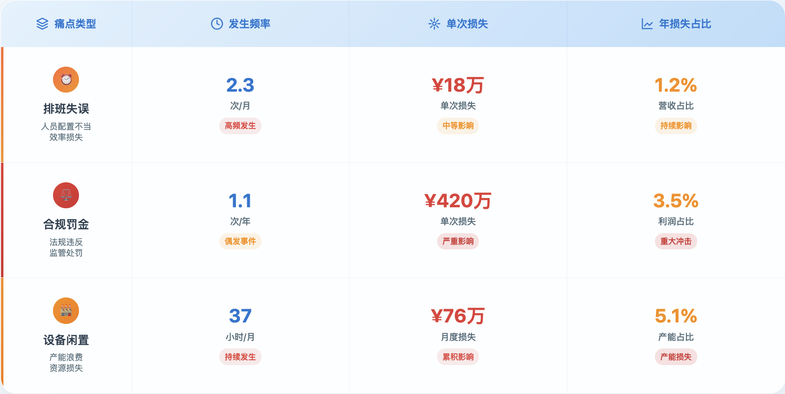 表1:汽车设备行业痛点成本量化表(示例)