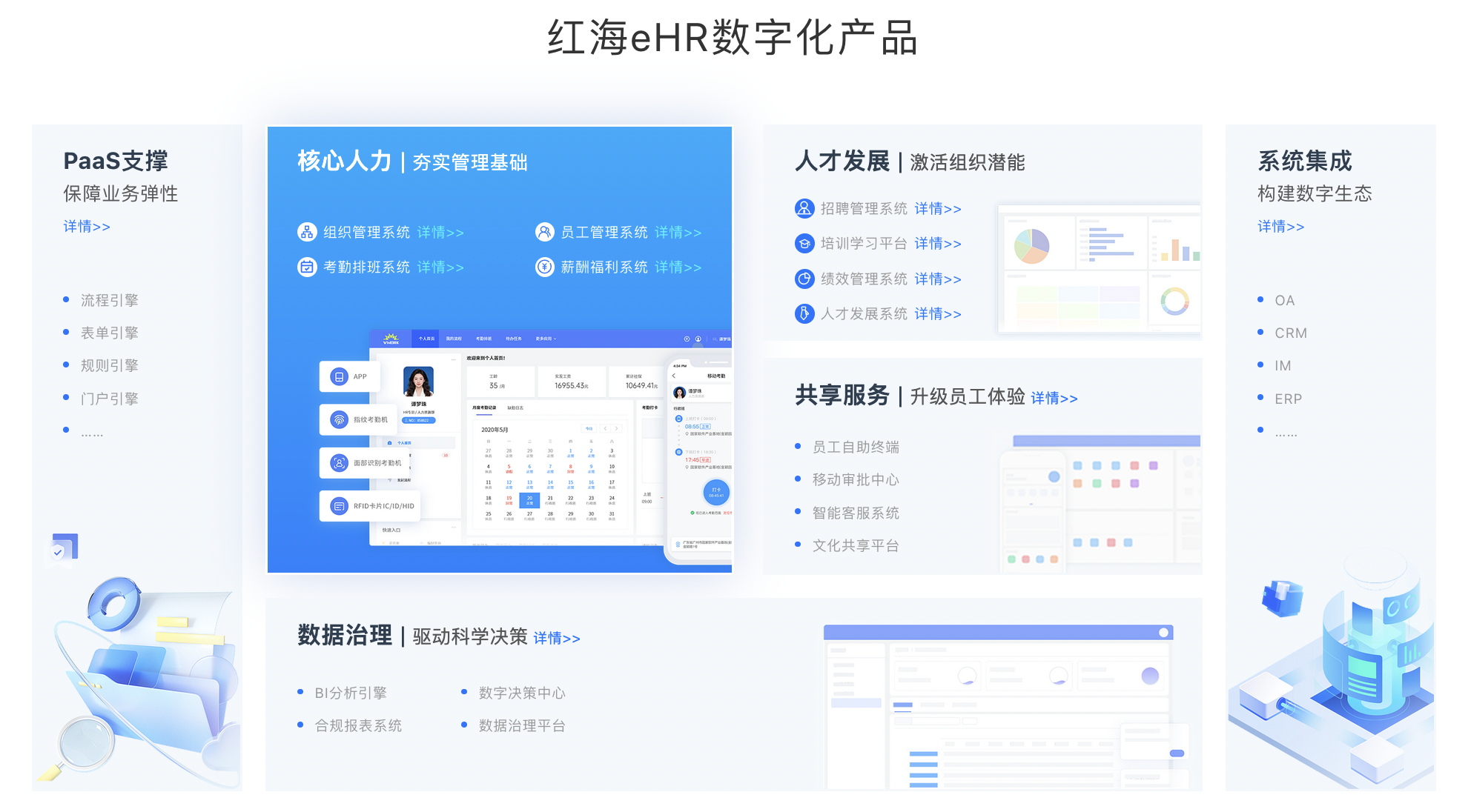 针对大型集团与业务复杂企业,红海云提供强大的PaaS平台支持,开放API接口,支持SQL平台、流程设计与报表开发,满足企业二次开发与个性化需求。企业可根据自身业务变化,灵活扩展系统功能,快速适应市场和管理模式的变化。