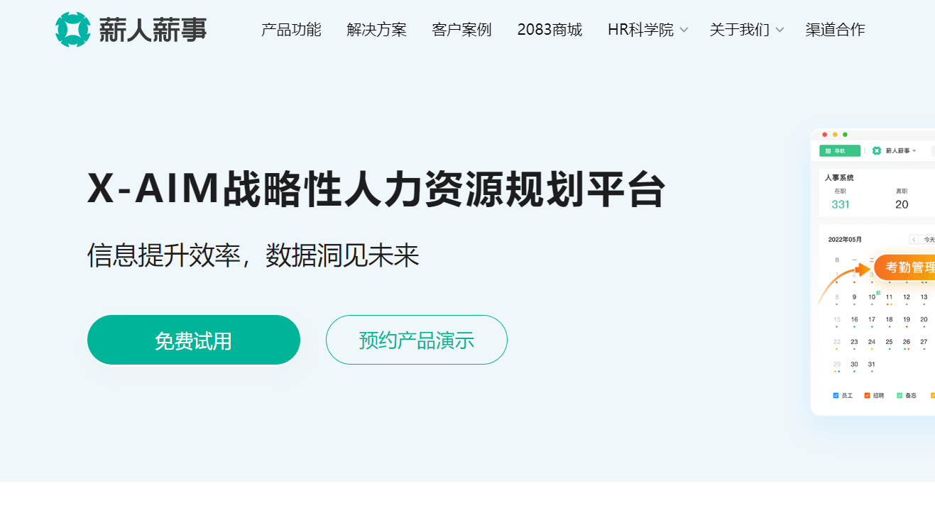 薪人薪事是一款专注于人力资源管理的SaaS产品,特别适合中小企业。它提供了基础的人事、薪酬、考勤等功能,且操作简单、上手快。
