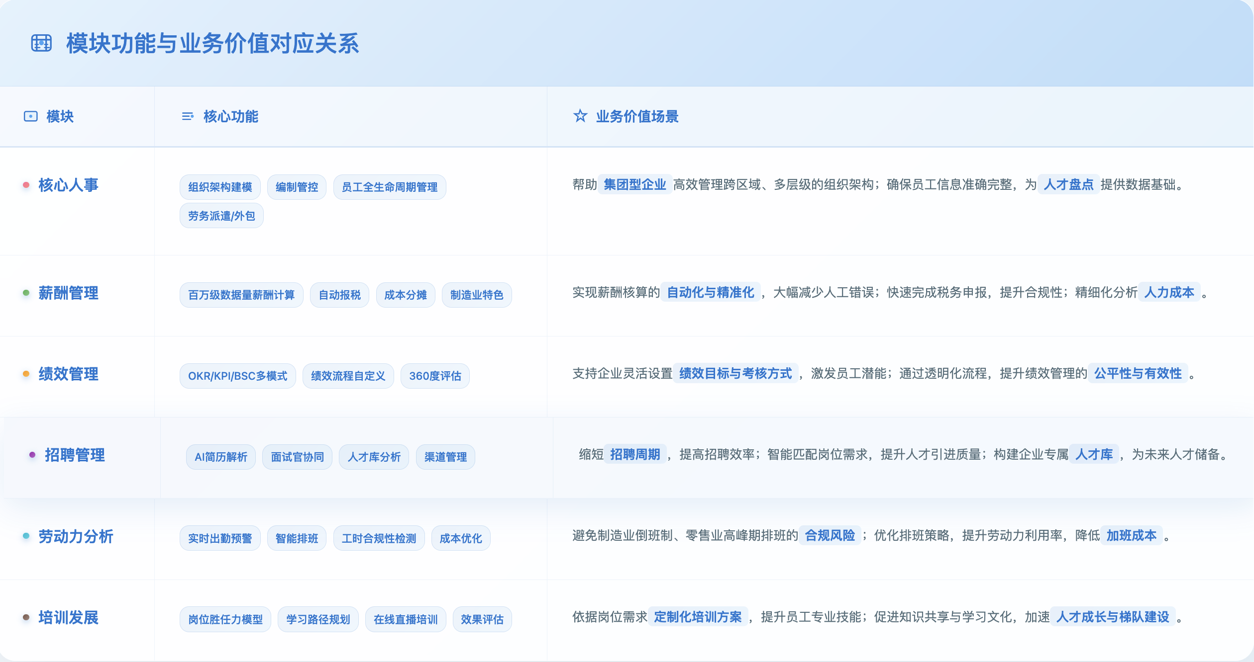 适用场景:中大型企业,尤其关注人才发展、招聘测评等需求的企业。