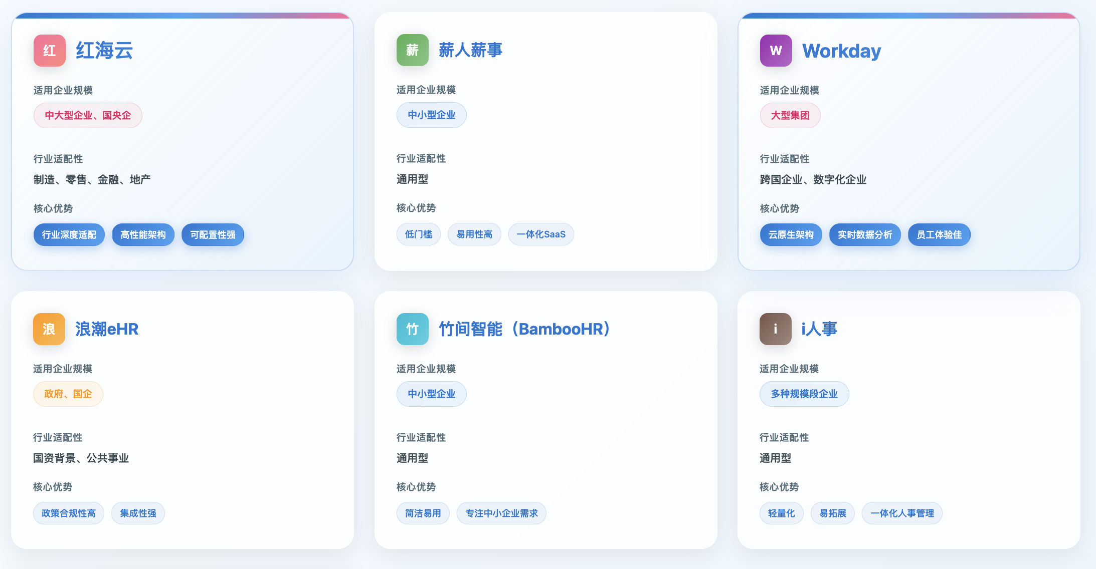 金蝶:国内老牌企业管理软件供应商,主推云HR与智能财务一体化,强调灵活配置和移动化,在中小企业市场及财务与人力资源一体化应用领域占据优势。