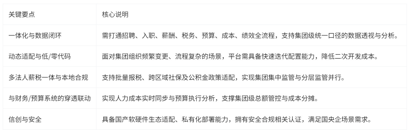 适用场景:国企集团采用SAP作为数字化底座时,适合以SuccessFactors统一人力治理框架并与财务/供应链形成协同;如涉及深度本地化、私有化或国产化生态适配,需提前评估部署模式与本地合规扩展方案。