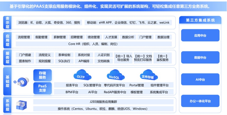 1、建设流程贯通、全场景一体化人力资源管理基座