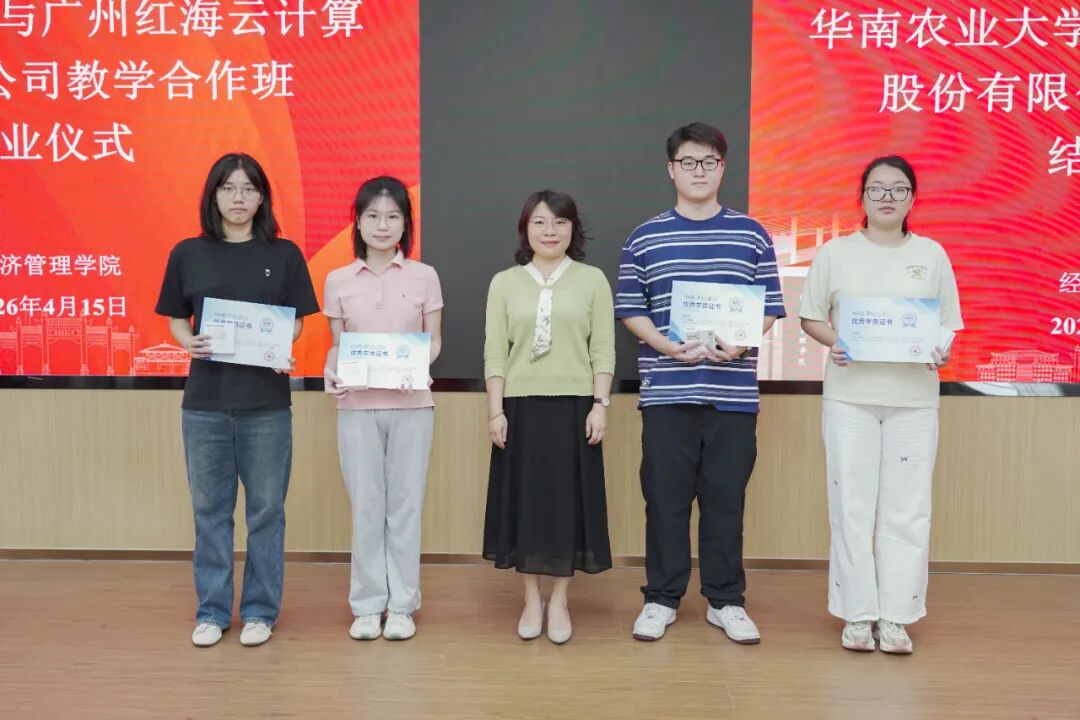 2026年4月15日,红海云与华南农业大学经济管理学院(以下简称“华农经管学院”)校企合作项目——“人力资源(云端HR创新班)”专项培训结业仪式在华农经管学院圆满举行,历时一个多月,30余名学员完成了从数字化认知到系统实操、再到跨行业案例研判的完整学习闭环。华南农业大学本科生院院长何茜、经管学院党委书记张晖及红海云CEO孙伟等校企领导与全体学员共同出席。
