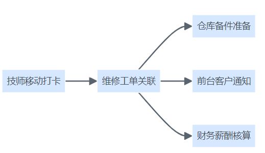 移动考勤系统与门店管理平台实现数据互通。技师打卡信息与维修工单自动关联,管理者可在系统中根据技师当前状态、历史工单表现和客户反馈,进行任务分配与人员调度。各环节数据同步更新,减少了部门间“信息孤岛”的出现。