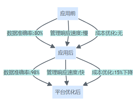 数字考勤平台应用前后,物业企业数据准确率提升、管理响应速度加快、运营成本下降的效果对比。