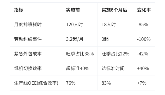 造纸行业的实践揭示了一个更深层逻辑:排班不仅是考勤表上的格子,更是调节生产效能的精密阀门。 当智能系统将人力要素纳入生产大循环,企业获得的不仅是合规与成本收益: