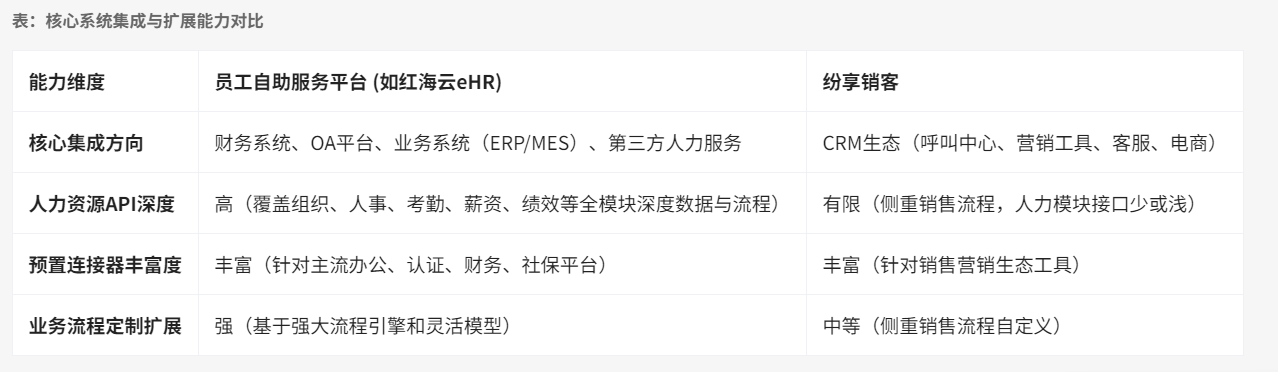 其开放平台和集成重心天然偏向于销售与营销生态。在对接CRM相关的呼叫中心、营销自动化工具、客服系统、电商平台等方面拥有优势。其对于人力资源核心模块的深度API支持通常有限,特别是涉及薪资、绩效等敏感和复杂数据的接口,可能不开放或功能受限。