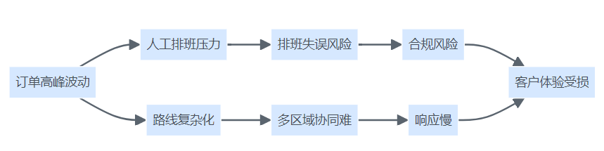 物流企业在订单高峰、路线复杂和人员协同等场景下,人工排班压力陡增,易产生合规和客户体验隐患。