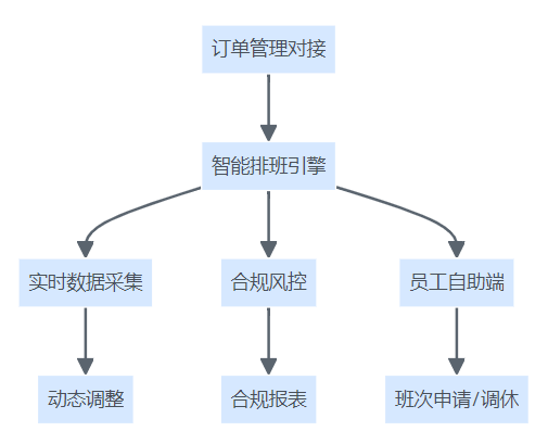 排班自动化平台集成订单管理、智能排班、实时数据、合规风控及员工自助等核心功能模块,形成高效运营体系。