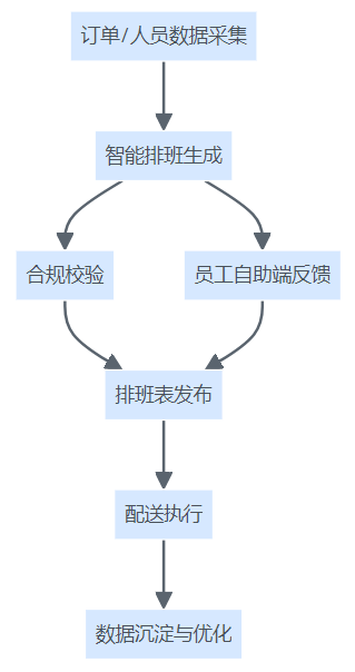自动化平台通过数据采集、智能排班、合规校验和员工互动,形成高效闭环的物流排班管理流程。