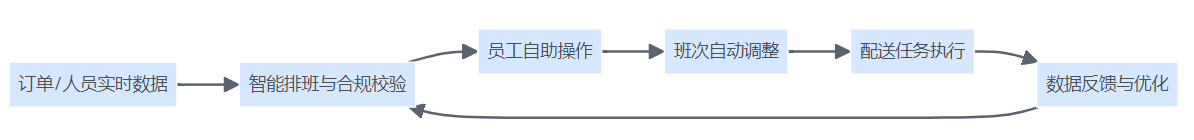 智能排班平台通过实时数据、自动排班、员工自助、任务执行和数据反馈形成持续优化的运营闭环。