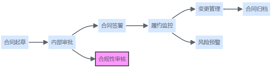 合同阶段 关键节点 系统提醒类型 预警措施 合同签署 履约开始 自动邮件提醒 合同归档审核 项目执行 付款节点 资金计划提醒 财务风险预警 设备验收 交付验收 逾期预警 责任人督办 合同变更 条款调整 法规更新提醒 合规性二次审核