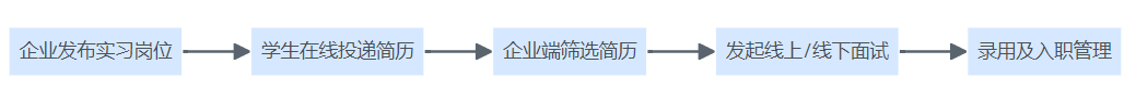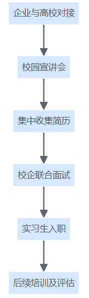 企业与高校合作实习招聘流程图,展示宣讲、简历收集、联合面试到培训评估的全流程