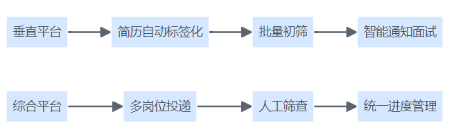 垂直类与综合性平台简历处理流程结构图,展示自动标签化与人工筛查的差异