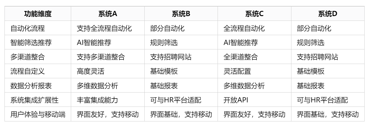明确需求优先级:高频招聘企业应优先关注自动化、智能筛选、多渠道整合等核心功能,结合自身业务节奏和岗位特性,选定系统能力侧重点。