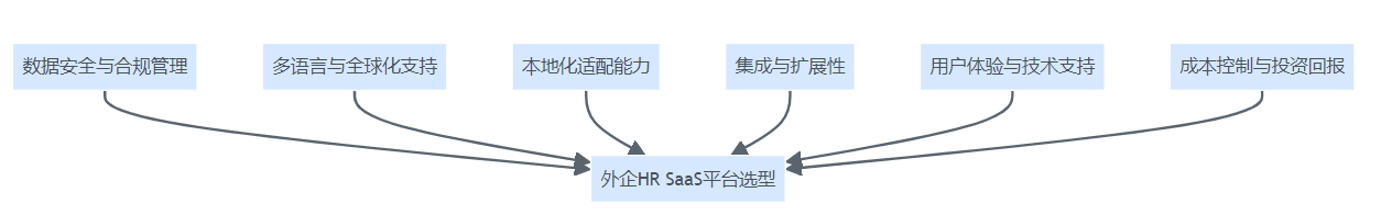 外企在实际选型过程中,往往需多维度评估HR SaaS平台的适配能力与长期价值。以下六点是管理者普遍关注的核心标准: