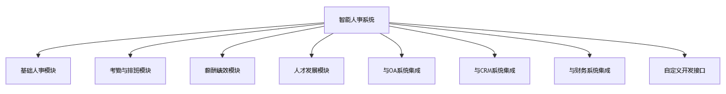 智能人事系统模块化扩展与多系统集成结构图
