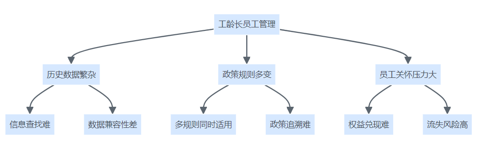工龄长员工管理涉及历史数据繁杂、政策多变和员工关怀等多重难点。