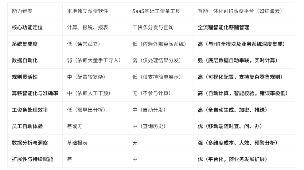 面对上述挑战,市场上常见的工资条解决方案主要分为三类,其能力边界差异显著: