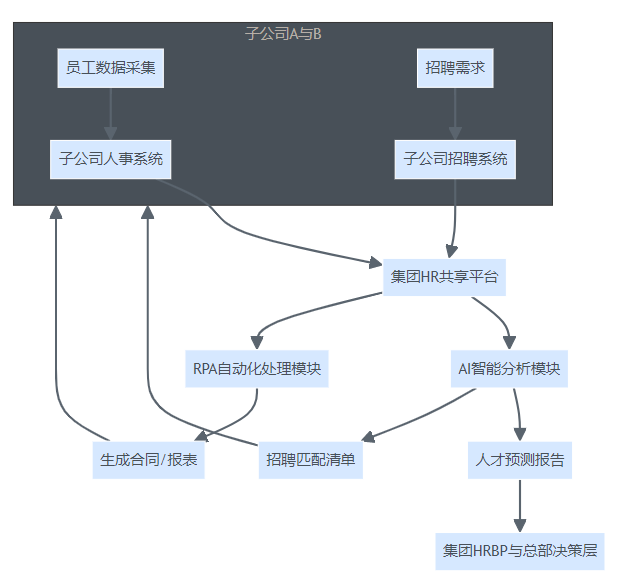 传统的HR三支柱模型(HRBP、COE、SSC)在多子公司场景下容易出现信息割裂和协作断层。新的趋势是将COE与HRBP资源融合,形成跨区域、跨业务的战略HRBP体系,由共享平台统一调配。同时,SSC通过数字化与RPA自动化处理事务性工作,实现更高的集中化和智能化。