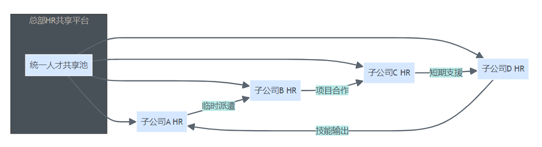 未来的多子公司HR共享平台,将内置一个覆盖集团内部的人才共享池,并与灵活用工政策打通,实现: