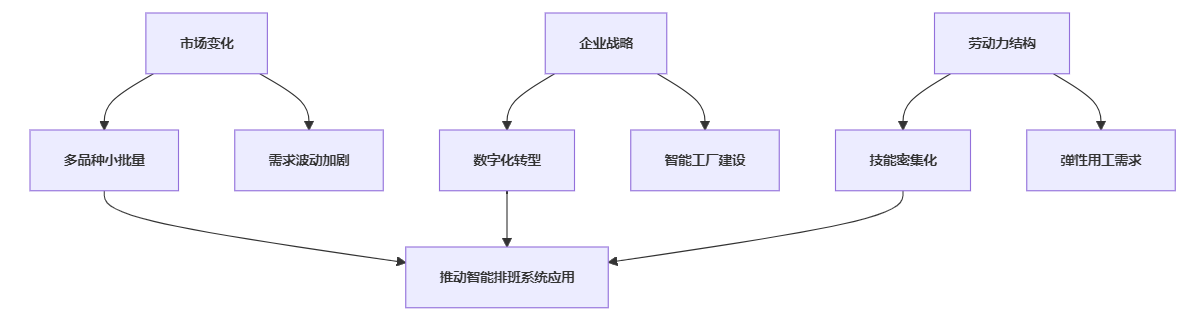 制造业多品种小批量、数字化转型和技能密集化三大趋势共同推动智能排班系统成为行业变革核心。