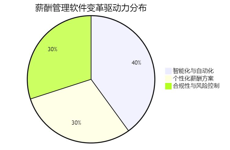 Alt 文本:金融行业薪酬管理软件变革驱动力分布饼图,智能化、个性化、合规性各占重要份额。