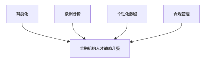 未来薪酬管理软件助力金融机构人才战略结构图,智能化、数据分析、个性化激励与合规管理共同推动战略升级。