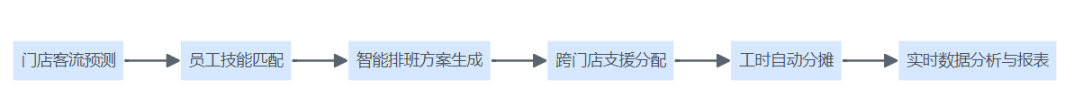 门店智能排班、跨店支援与工时分摊业务流程可视化图