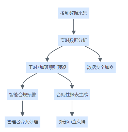数字化考勤系统实现数据分析、合规预警与数据安全保障的流程图