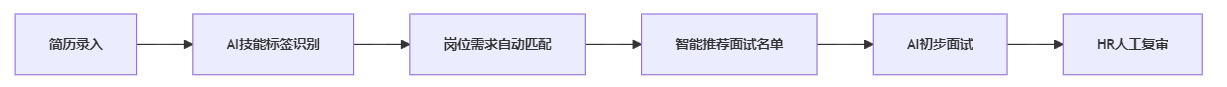 智能筛选流程结构图,展示从简历录入到AI标签识别、岗位自动匹配金融智能面试的流程。