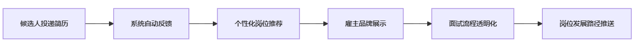 候选人体验优化流程图,展示从简历投递到反馈、推荐、品牌展示与职业发展路径推送的全过程。