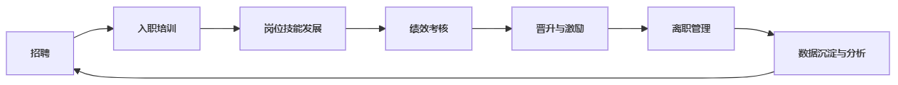 医疗行业人才管理全流程结构图,展示从招聘到数据分析的闭环管理。