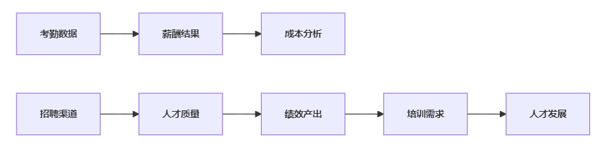 通过消除传统HR模块间的数据壁垒,系统构建完整的人效分析图谱: