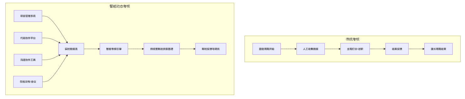 高科技企业身处创新风暴中心,其人才结构复杂(研发、产品、算法等高密度知识型岗位)、项目迭代迅猛、协作模式高度网络化。传统基于固定周期、主观打分、标准化指标的绩效考核模式日益显得笨拙无力。某头部AI公司在2023年的一项内部调研发现,超过65%的研发工程师认为季度KPI考核未能有效反映其在开源社区影响力、跨团队技术攻关等核心价值创造活动中的真实贡献。管理者则疲于收集碎片化信息,难以对快速变动的项目组效能做出及时判断。
