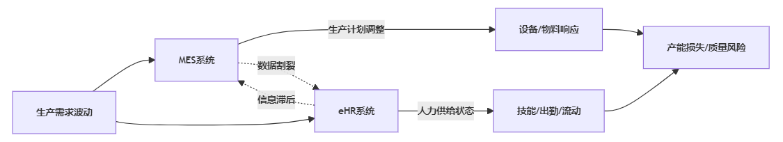 图:MES与eHR割裂导致的制造运营风险传导链