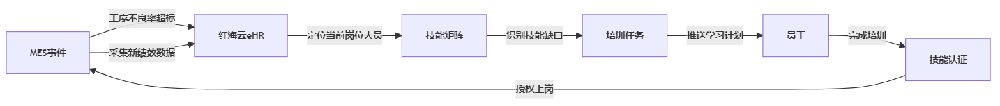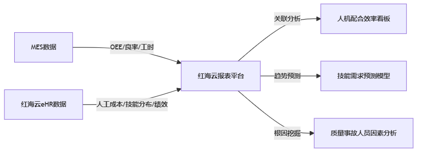 深化数据融合应用: 在基础集成稳定后,将红海eHR中的招聘需求(预测未来技能缺口)、培训资源(匹配MES反馈的技能短板)更深层次融入生产决策循环。
