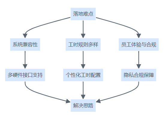 智能考勤系统的技术进步,为制造业带来了管理效率和数据安全的新突破,但在实际落地过程中,企业仍面临诸多挑战。红海云调研发现,以下几个难点最为典型: