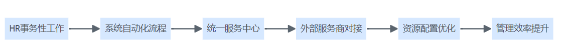服务行业HR系统资源整体化管理与多元服务交付结构图,展示事务整合、自动化、服务对接与效率提升的流程。