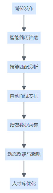 招聘与绩效一体化平台智能化流程结构图,展示从岗位发布到人才库优化的全流程自动化。
