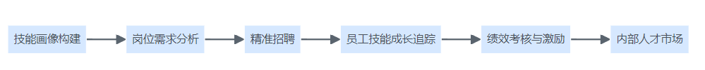 技能为核心的人才管理业务结构图,展示从技能画像到绩效激励及内部流动的完整链条。