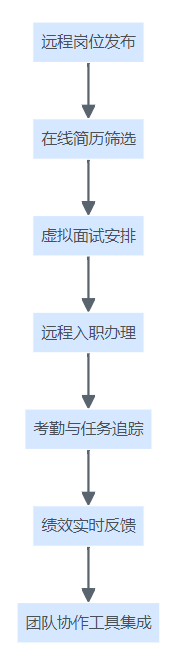 一体化平台支持远程与混合办公的功能覆盖流程图,包括招聘、入职、考勤、绩效及协作工具集成。