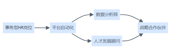招聘与绩效一体化平台带动HR岗位从事务型向业务合作伙伴转型的结构流程图。