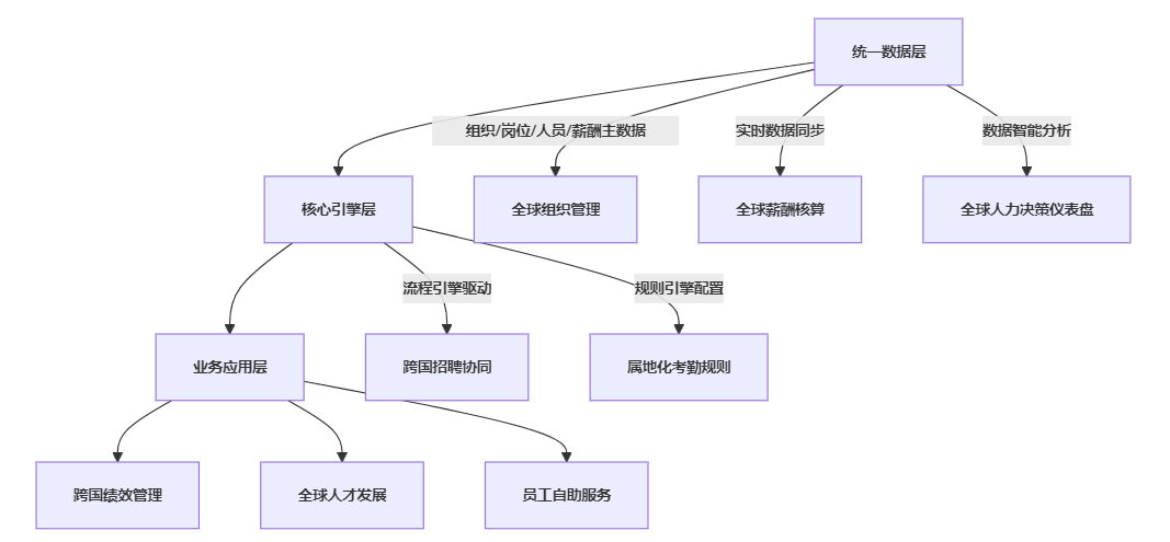 可视化元素一:跨国HR系统一体化平台核心架构图(Mermaid)