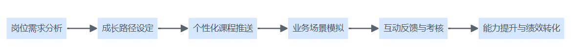 定制化与场景化企业培训流程结构图,从岗位需求分析到能力提升与绩效转化,展示智能平台驱动下的培训全流程。