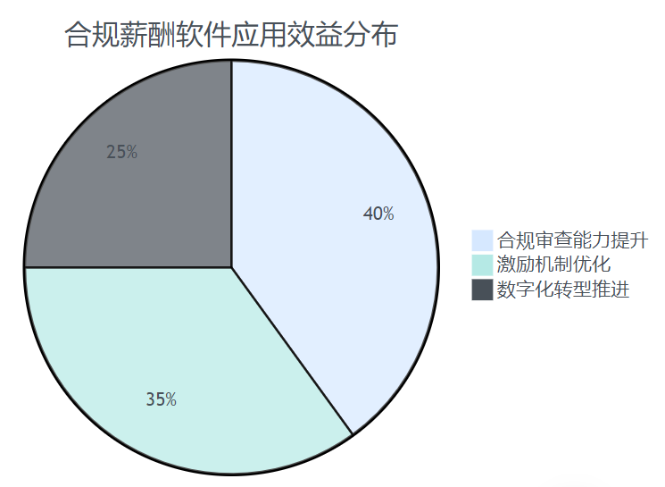 合规薪酬软件应用效益分布饼图,体现合规审查、激励优化与数字化转型三方面的提升。
