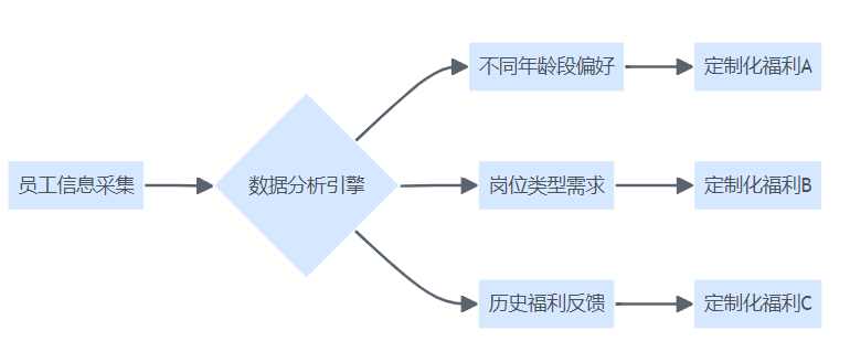 员工福利个性化推荐流程结构图,展示如何通过数据分析为不同员工群体匹配福利组合