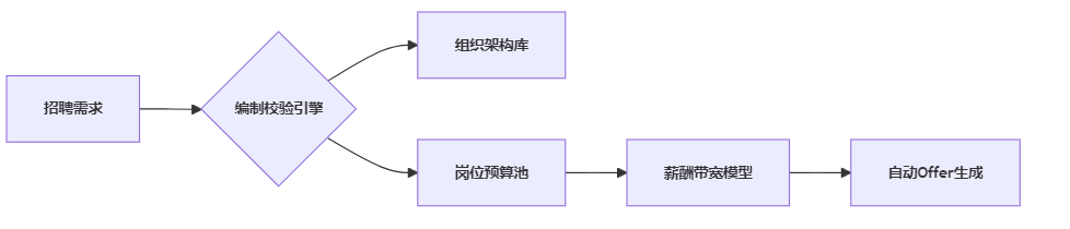 传统招聘软件常面临与考勤、绩效模块数据割裂的痛点。某上市零售企业曾出现Offer发放后因薪资核算延迟导致候选人流失的案例。红海eHR通过自主研发的流程引擎(见图1),实现招聘需求发起→编制校验→岗位预算调取→薪酬带宽匹配的四层自动校验,消除30%的跨系统沟通损耗。这种底层架构变革使招聘系统不再是独立组件,而是嵌入企业人力生态链的神经网络。